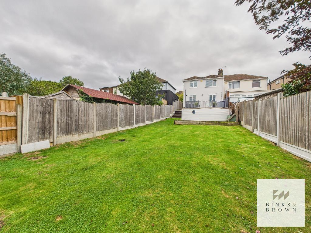 The rear garden extends to approximately 100ft and has been thoughtfully landscaped. A convivial raised deck provides the perfect entertaining space, leading to a well-kept lawn bordered by mature planting. The garden enjoys a largely unoverlooked aspect for added privacy.