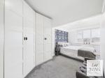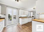 Spanning the rear of the home, the Kitchen is a true highlight. Designed for both form and function, it features an abundance of gloss white cabinetry paired with oak work surfaces, a stainless steel double sink, and a range of integrated AEG appliances. This space offers the perfect environment for cooking and entertaining.