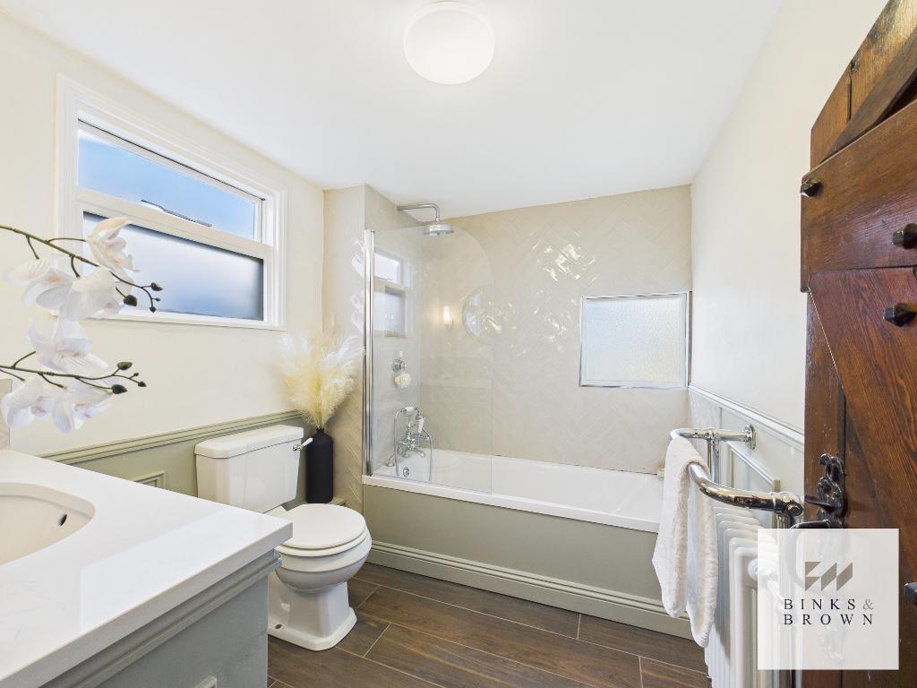 Upstairs, two double bedrooms continue the home's period elegance, each full of charm and character. A luxurious family bathroom serves both rooms, complete with a quartz-topped washstand and classic metro tiling - beautifully blending style and substance.