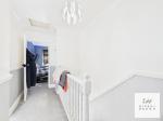 The adjacent kitchen is positioned to the rear, featuring sleek white cabinetry paired with anthracite work surfaces. This space offers ample potential for further modernisation and direct access to the garden, enhancing its functionality for everyday living.