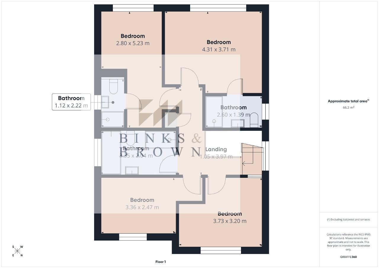 W/C - 5' 4'' x 3' 4'' (1.63m x 1.03m)