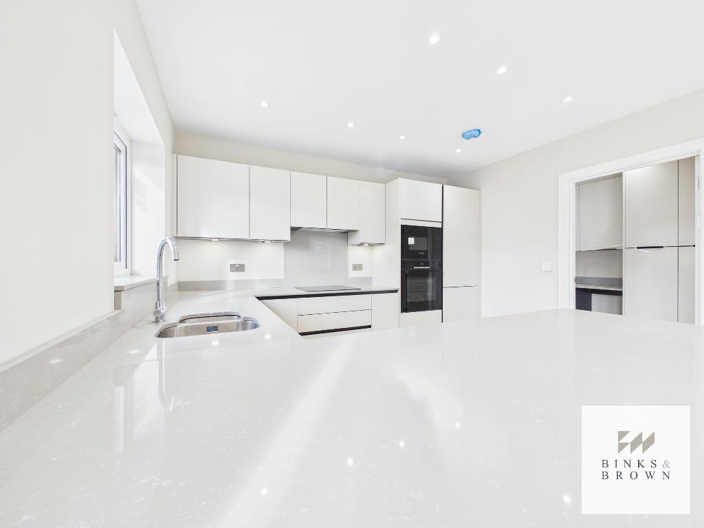 Contemporary fitted kitchen with premium appliances and stone worktops
