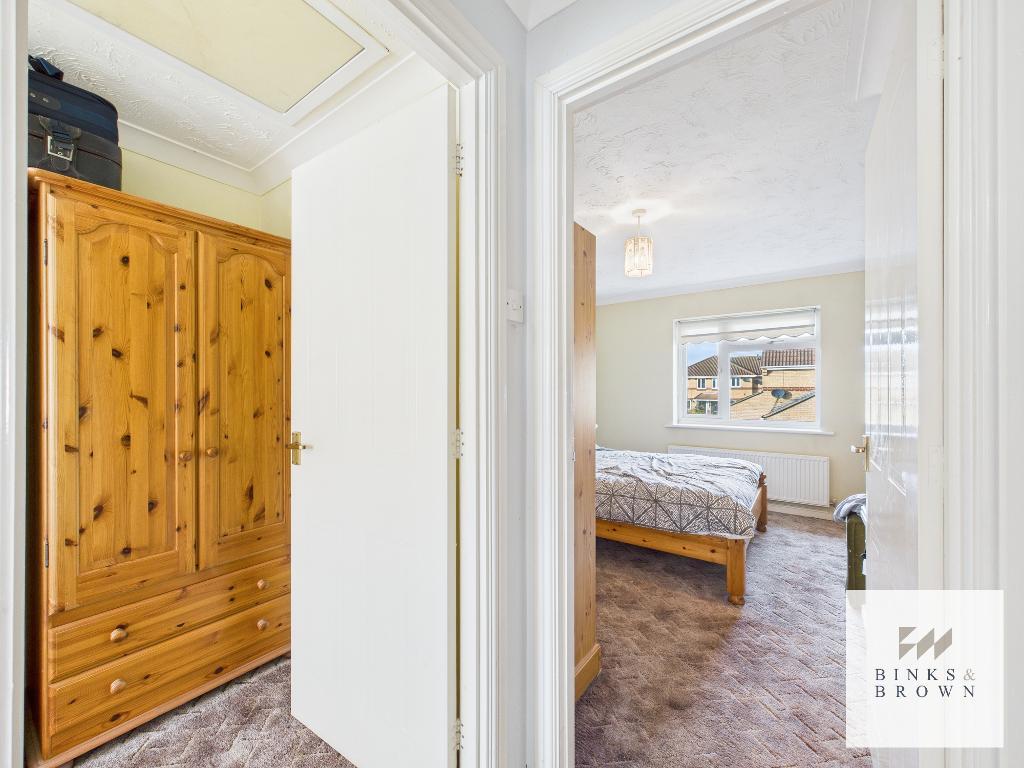The first floor comprises two spacious bedrooms, each benefitting from generous proportions and excellent natural light. A practical family bathroom and a useful airing cupboard complete the layout, adding to the home"s overall functionality.
