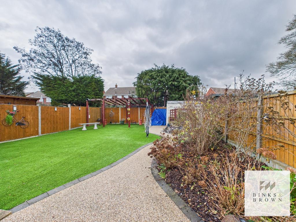 Externally, the rear garden has been designed with low maintenance and year-round enjoyment in mind, featuring artificial grass and smart resin pathways.
