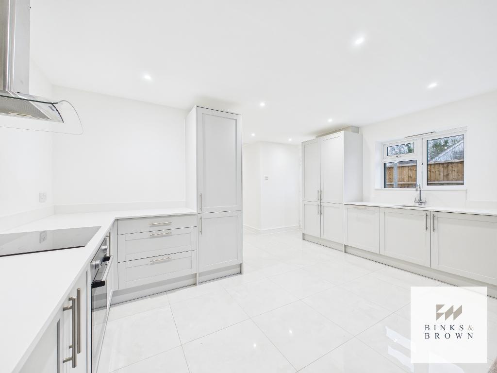The heart of the home is the impressive open-plan living space, designed for modern living and entertaining. The stylish kitchen features dove grey shaker-style cabinetry complemented by quartz work surfaces and an undermounted sink, creating a sleek and cohesive look. The adjoining utility room, finished with matching cabinetry, provides excellent additional storage along with space for a washer and dryer, and incorporates a convenient separate WC.