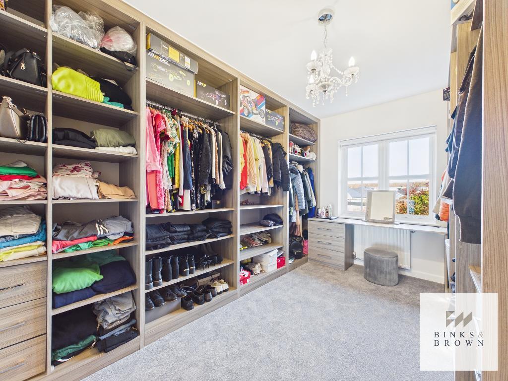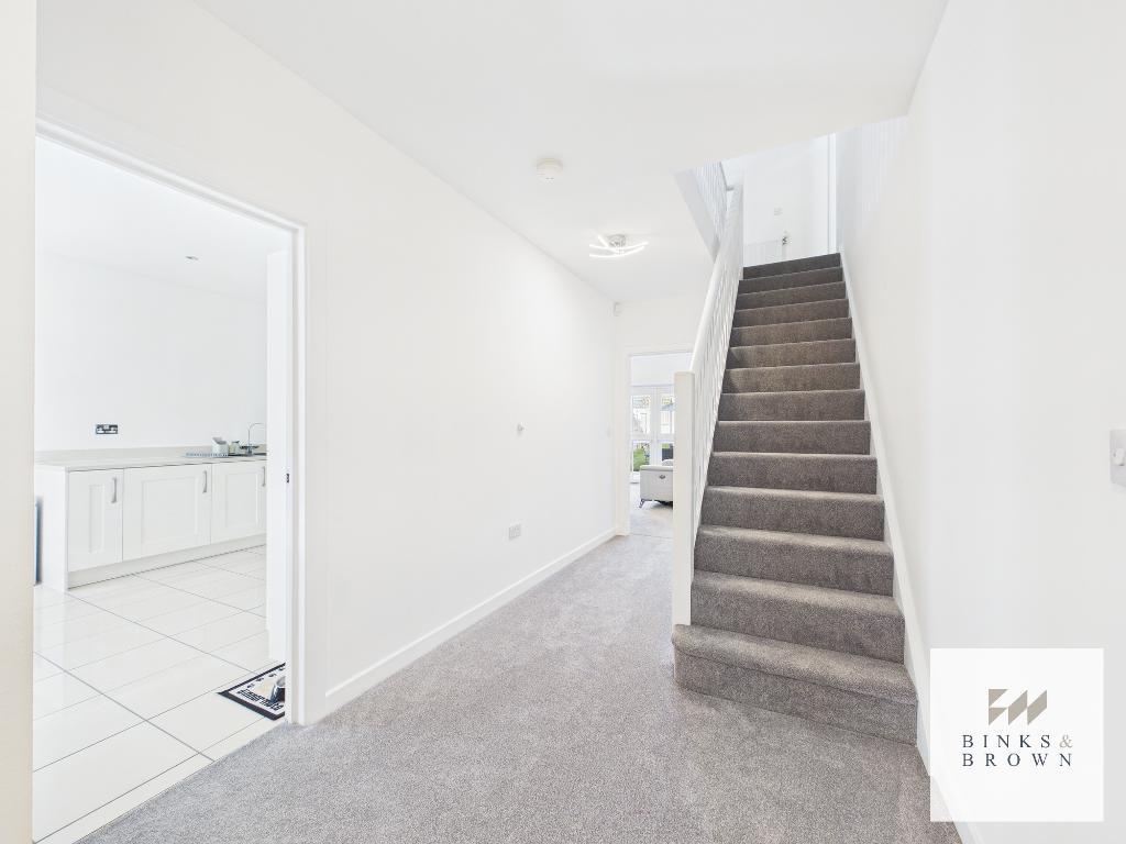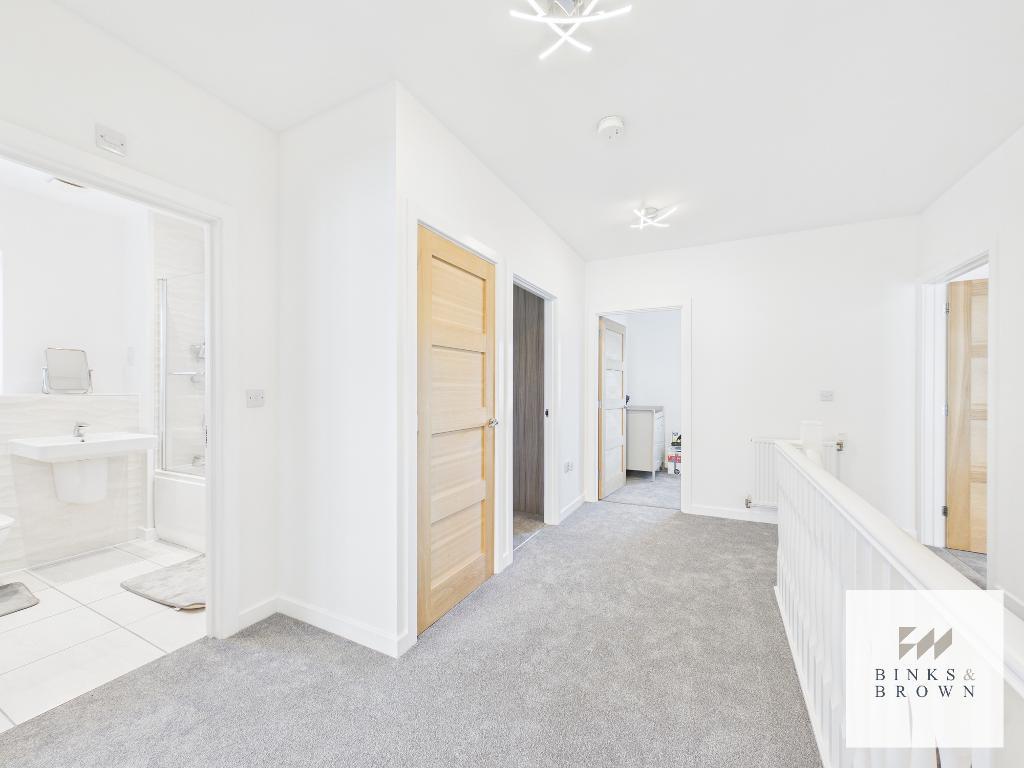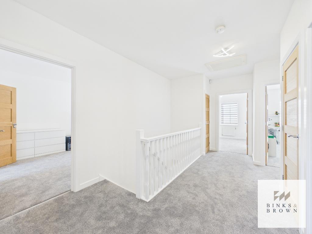 The sense of space continues upstairs via a wide landing, which also provides valuable built-in storage.
