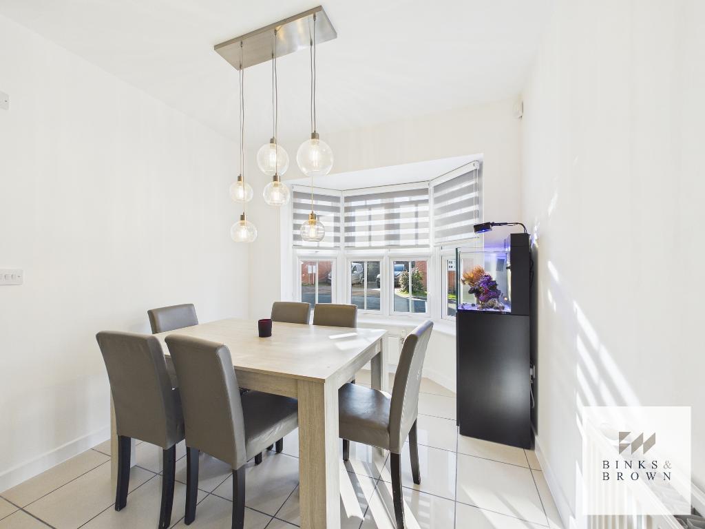 The dining area enjoys excellent natural light via an attractive bay window, creating an ideal setting for family meals or entertaining guests.