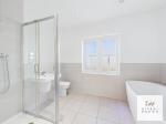 The stunning principal bedroom suite stretches across the full depth of the property and provides a luxurious retreat, complete with a well-appointed en-suite bathroom featuring both a bathtub and separate walk-in shower.