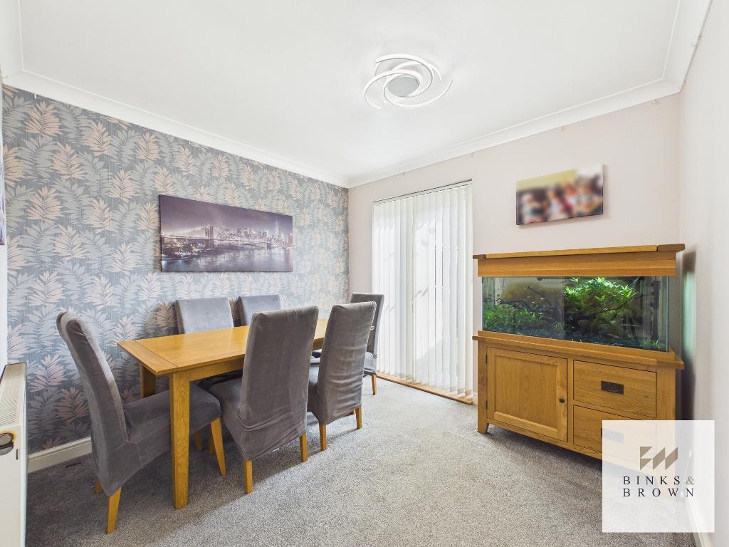 Adjacent to this, the dining room offers a versatile space for family meals or entertaining and flows neatly into the kitchen.