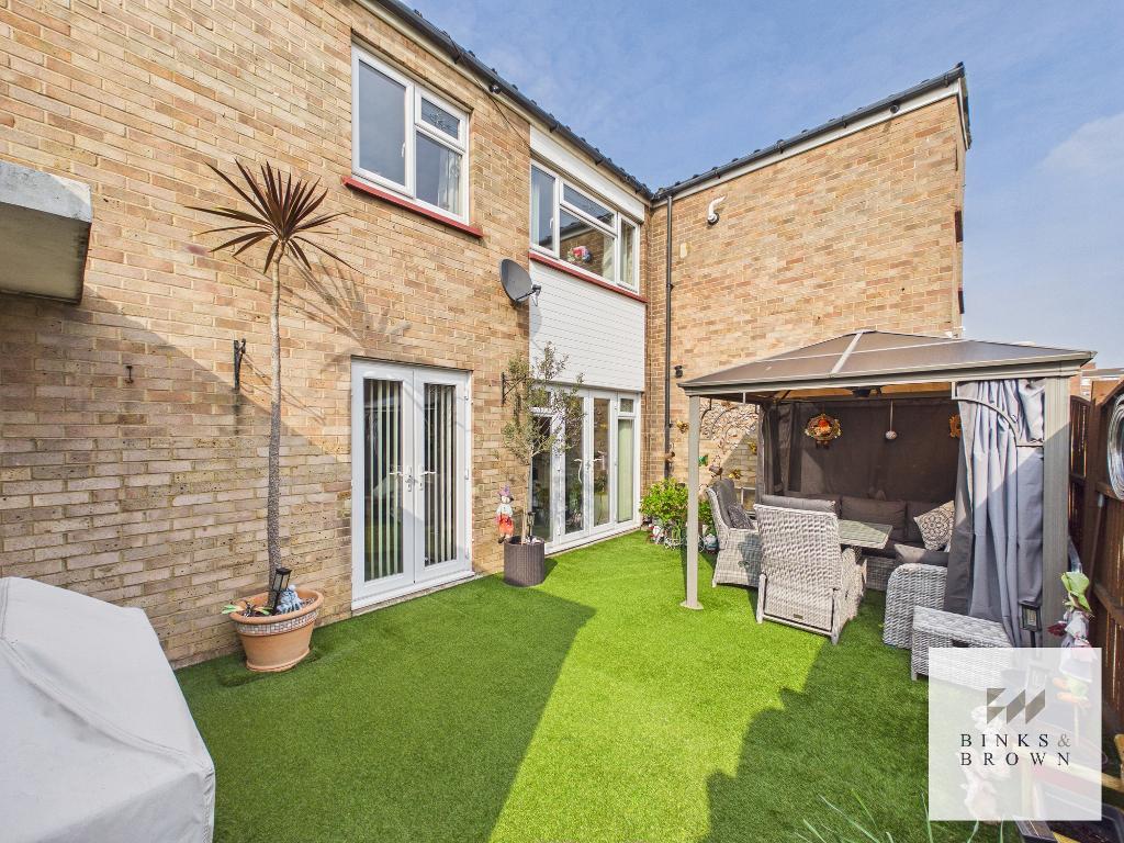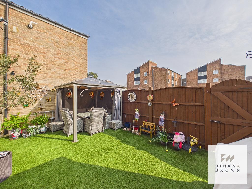 The rear garden enjoys a sunny aspect and has been designed for low maintenance, featuring artificial lawn - ideal for year-round use.