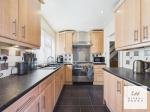 The kitchen is well-appointed with a range of beech-effect cabinetry complemented by anthracite work surfaces, and features a stainless steel range-style cooker with matching hood - perfect for those who enjoy cooking.