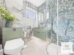 These rooms are served by a recently installed modern bathroom, featuring a walk-in shower and a stylish vanity unit with integrated accent lighting, delivering a contemporary finish.