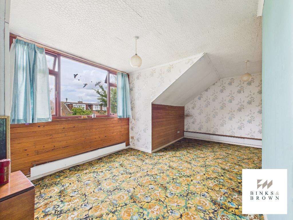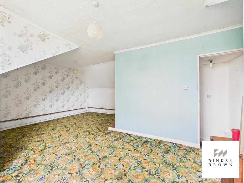 The ground floor features two well-proportioned double bedrooms at the front, with the kitchen and living room located at the rear, enjoying views over the garden. A standout feature of this property is the large, previously converted loft room, offering excellent potential to reconfigure into a stunning master bedroom, complete with en-suite or dressing area, subject to relevant permissions.