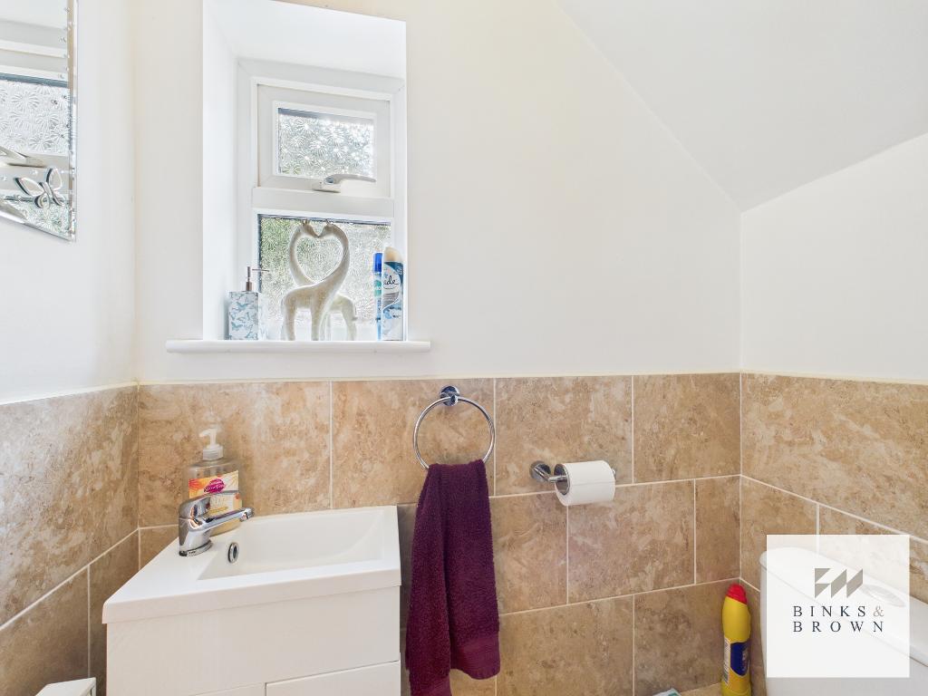 A welcoming hallway provides access to the ground floor cloakroom, offering a practical introduction to the home.