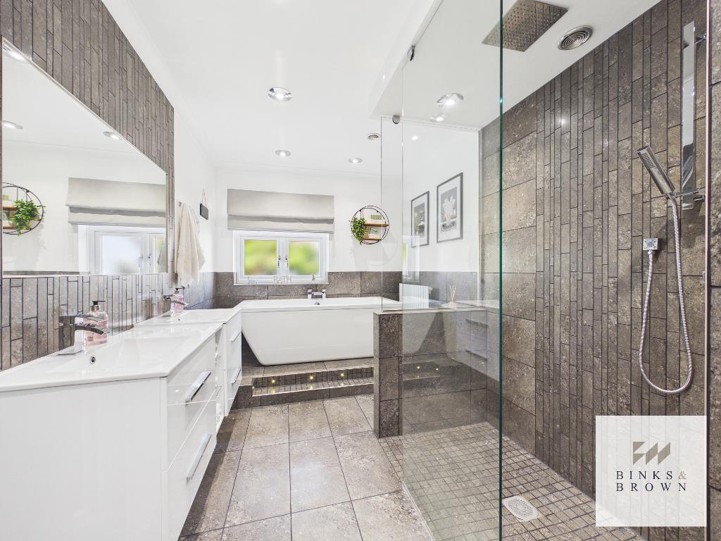The ground floor is served by a luxurious bathroom with walk-in shower, twin basins and an oversized bath.