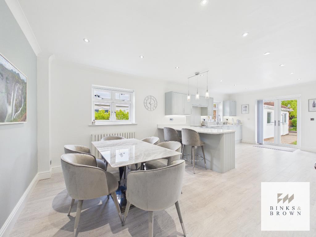 Positioned on the highly sought-after Central Avenue in Old Corringham, this beautifully renovated 1950s detached bungalow presents a rare opportunity to acquire a substantial and versatile home on a generous plot approaching a quarter of an acre. Combining elegant design with practical multi-generational living, this imposing residence offers approximately 1,700sqft of refined internal accommodation, complemented by a fully serviced annexe exceeding 500sqft and a detached garage.