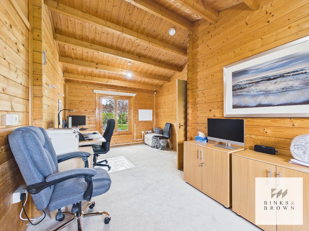 The mature rear garden is well maintained and offers excellent privacy, with access to the detached garage and a substantial self-contained annexe. The annexe provides ideal accommodation for extended family or a high-quality home office.